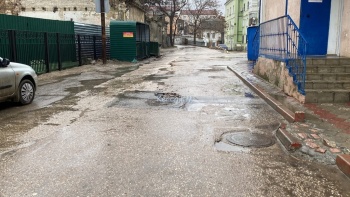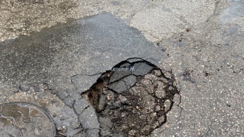 В Керчи 18 февраля на улице Театральной провалился участок дороги. На 14:00 часов данное место было не ограждено. На улице идет дождь и в ближайшее время яма может заполниться водой, что опасно для водителей, - передает Керчь.ФМ