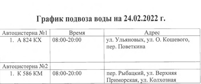 Керченский водоканал сообщает график подвоза воды на те улицы, которые из-за работ останутся 24 февраля без воды, - передает Керчь.ФМ.