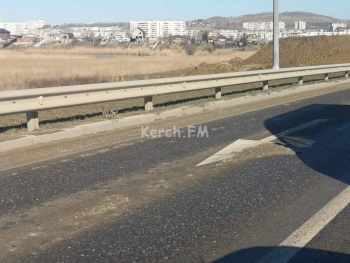 На путепроводе по ШГС в Керчи застыл разлитый бетон. Теперь убирать посторонний предмет с дороги можно только отбойным молотком, разрушая проезжую часть. В Керчи машины, развозящие бетон, разливают его на подъемах и не предпринимают никаких мер, чтобы после себя убрать, - передает Керчь.ФМ.