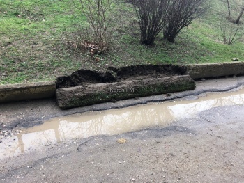 «Сколько мы пытаемся добиться ремонта дороги, где почти все время, кроме лета, стоит вода. Но никому нет дела. А теперь рухнула бетонная подпорная конструкция, которая держит насыпь земли. Естественно, земля же дальше пойдет, засыпет дорогу, а там и в подъездах нам ее ждать? Зачем следить за состоянием дворов? Зачем нам депутат? Чтобы свои интересны отстаивать, прикрываясь депутатством?», - написал керчане.