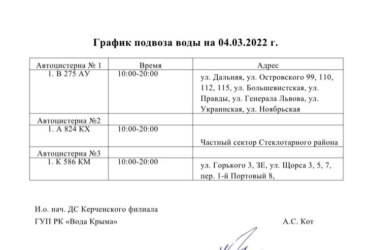 Керчанам, которые 4 марта останутся без воды, сообщают график подвоза