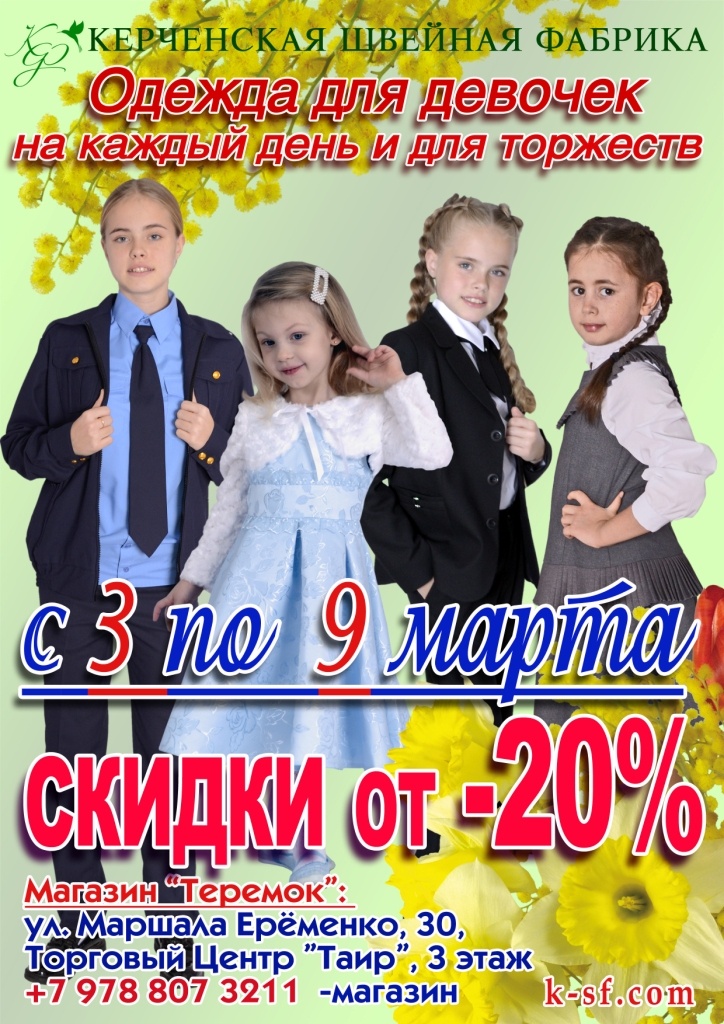 Скидки от 20% на школьную и форменную одежду, нарядные платья.