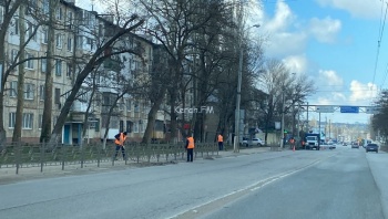 В Керчи 9 марта с утра осужденные чистят обочины дороги на улице Горького. Работы проводят в районе остановки «Авиакассы», - передает Керчь.ФМ.