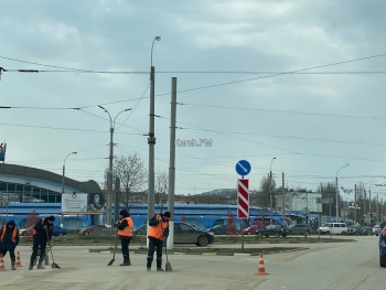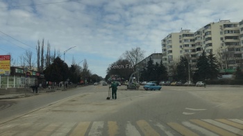 В Керчи 15 марта у кольца на «Институте» появились рабочие. Они сгребают грязь с «островков», метут пешеходный переход, памятник на кольце, - передает Керчь.ФМ. Рядом у техникума работает зеленхоз. Здесь спилили аварийные деревья, а ветки увозят сразу.