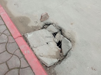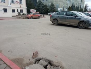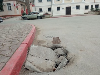 Спустя 4 месяца ситуация не стала лучше - бетонная плита уже треснула и проваливается еще глубже, а место провала выросло в размерах. Керчане надеются, что эту опасность в центре Керчи уберут как можно быстрее.