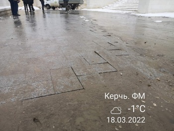 Площадка Митридатской лестнице в районе улицы Николая Рыбакова не вынесла нагрузки и пошла щелями и волнами. Теперь не только ступени и ограждения трескаются, но и на ровном месте видны изъяны, - передает Керчь.ФМ.