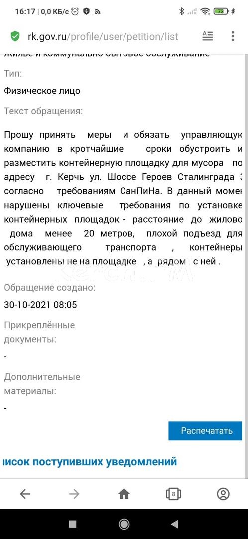 Администрация Керчи за подписью замглавы администрации Шеремета предоставила ответ, которым хоть и не отказала в переносе контейнерной площадки, но «понадавала» советов хоть лопатой греби.