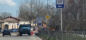 В Керчи 6 апреля на улице Шлагбаумской идут дорожные работы. На проезжей части, если двигаться от Шлагбаумской площади наверх к инфекционке, более 10 дней назад провалился люк. Сегодня рабочие разрыли часть дороги, чтобы устранить провал, - передает Керчь.ФМ.