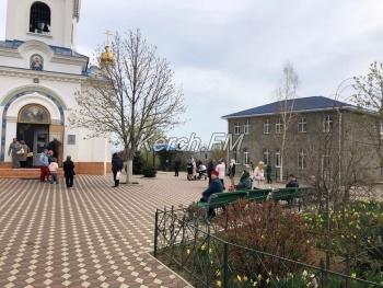 Жители и гости города с ветками вербы и другими цветами сегодня посетили церковь. Больше всего людей в церквях было с утра, к обеду число желающих несколько уменьшилось.