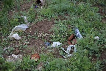 Здесь мы нашли кроме тюльпанов и мусор, и остатки крылатой мины, а может и целую: трогать не стали, мы не специалисты определить, безопасна ли она. Кто-то из посетителей указал место маской, чтобы люди случайно не наступили на нее.