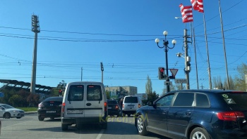 В результате ДТП повреждения небольшие, а движение для остальных почти встало. На месте работают сотрудники полиции.