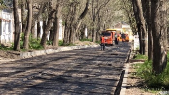 В Керчи с утра 29 апреля перекрыта улица Петра Алексеева - рабочие готовятся укладывать первый слой асфальта, - передает Керчь.ФМ.