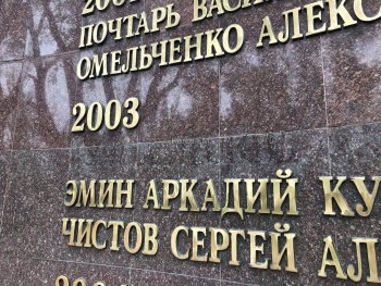 Как и обещали, имена убрали с доски почета, работы шли в выходные дни. Теперь на месте, где были имена, остался лишь пыльный след.