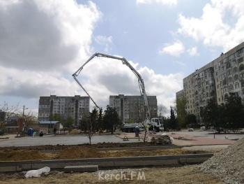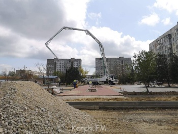 Несмотря на выходной день вчера работали строительные бригады в сквере у Таврической площади. Уже залили участки под будущие спортивные площадки бетоном, - передает Керчь.ФМ.