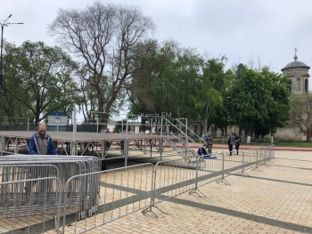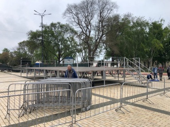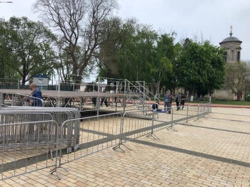 Сегодня, 5 мая, на площади Ленина начали устанавливать сцену. На ней будут выступать артисты два дня 8 и 9 мая.