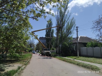 В Керчи днем 12 мая в переулке Корабельный перекрыт сквозной проезд, - передает Керчь.ФМ. Здесь рабочие с помощью спецтехники пилят высокие деревья.
