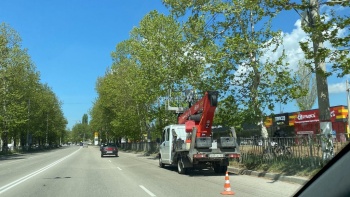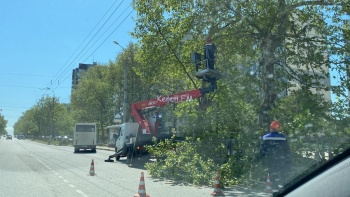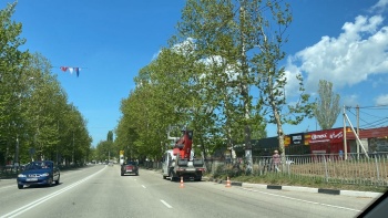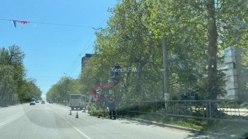 В Керчи на Генерала Петрова проводят обрезку деревьев