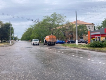 В Керчи 18 мая дорогу на Вокзальном шоссе чистили с помощью техники. Работы проводили, около железнодорожного вокзала. Пыль не поднималась из-за того, что дорога была мокрая после утреннего дождя, - передает  Керчь.ФМ.