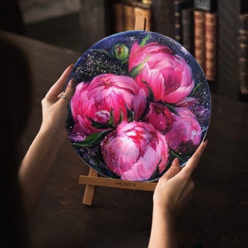 Пишем акрилом волшебные пионы на круглом холсте 30х30 см.