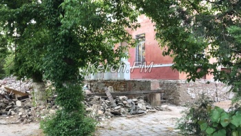 Как оказалось, и здесь все сроки по окончанию работ уже прошли: здание, где была подстанция скорой помощи, должны были отремонтировать в 2021, а здание псих диспансера - в апреле 2022. Но отсюда даже не удосужились вывезти строительный мусор.