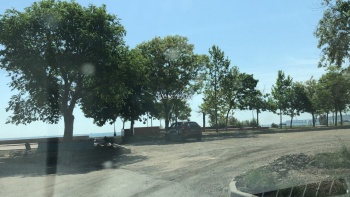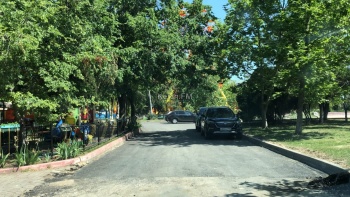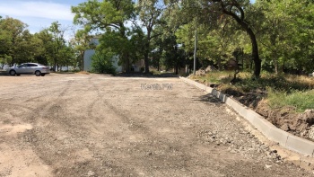 Место под парковку на набережной у фонтана пока просто облагородили, установили новые бордюры, но асфальт не укладывали. На дорогах стоят знаки, ограничивающие скорость.