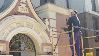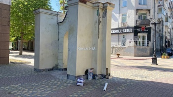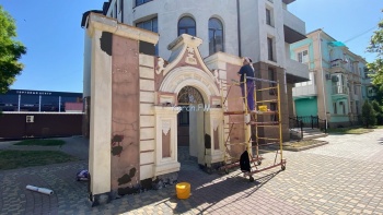 В Керчи 1 июня приступили к реставрации старинной арки 19 века на улице Ленина. Специалист с помощью материалов шпаклюет фасад арки. Её подготавливают к дальнейшей покраске, - передает Керчь.ФМ.