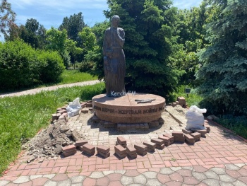 В Керчи, 2 июня в сквере Мира, начали демонтировать плитку около памятника детям - жертвам войны, - передает Керчь.ФМ.