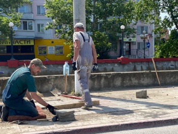 В Керчи 8 июня на улице Маршала Еременко коммунальщики приступили к перекладке плитки. Работы проводят рядом со светофором, около стадиона 50-летия Октября. Ранее, здесь водоканал устранял порыв. Для этого рабочие демонтировали плитку, но ее быстро восстановили, и через время она просела, - передает Керчь.ФМ.