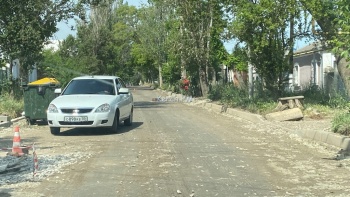 В Керчи 8 июня на улице Комарова работало всего три рабочих. Видимых изменений с последнего посещения данной улицы журналистами Керчь.ФМ 31 мая нет. Все также открыты люки, установлены бордюры и снято старое асфальтовое покрытие.