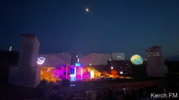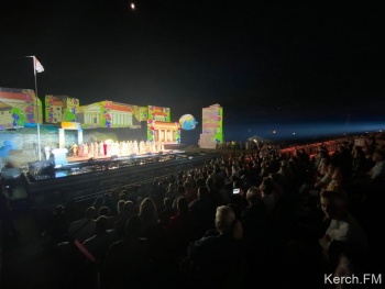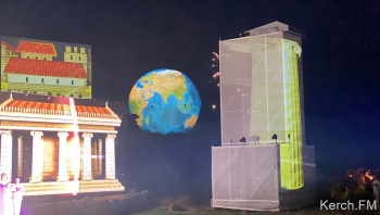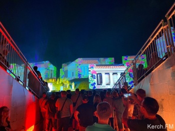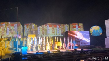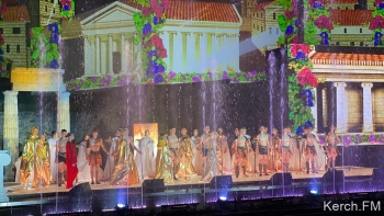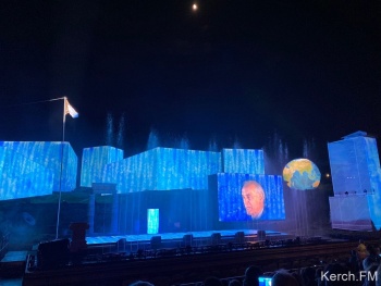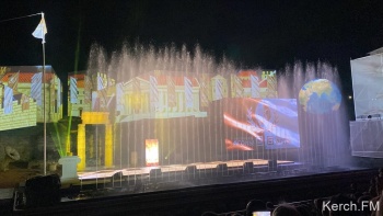 В этом году над декорациями постарались, керчане могли наблюдать и световое шоу, и водное. А вход охраняют два грифона