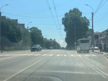 До этого, рабочие нанесли пешеходные переходы на улице Генерала Петрова.