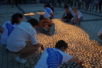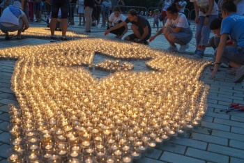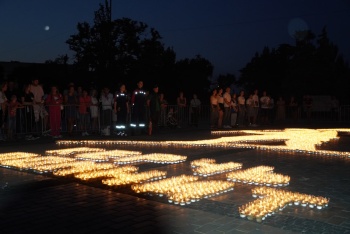 Керчане выложили огненную картину в память о войне. Сотни свечей зажгли на площади Ленина, - передает Керчь.ФМ.