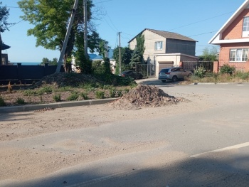 Аналогичная ситуация на улице Театральной со стороны Спортивного переулка. Но тут никто грязь с дороги не убирает, поэтому она так и продолжает находится на проезжей части.