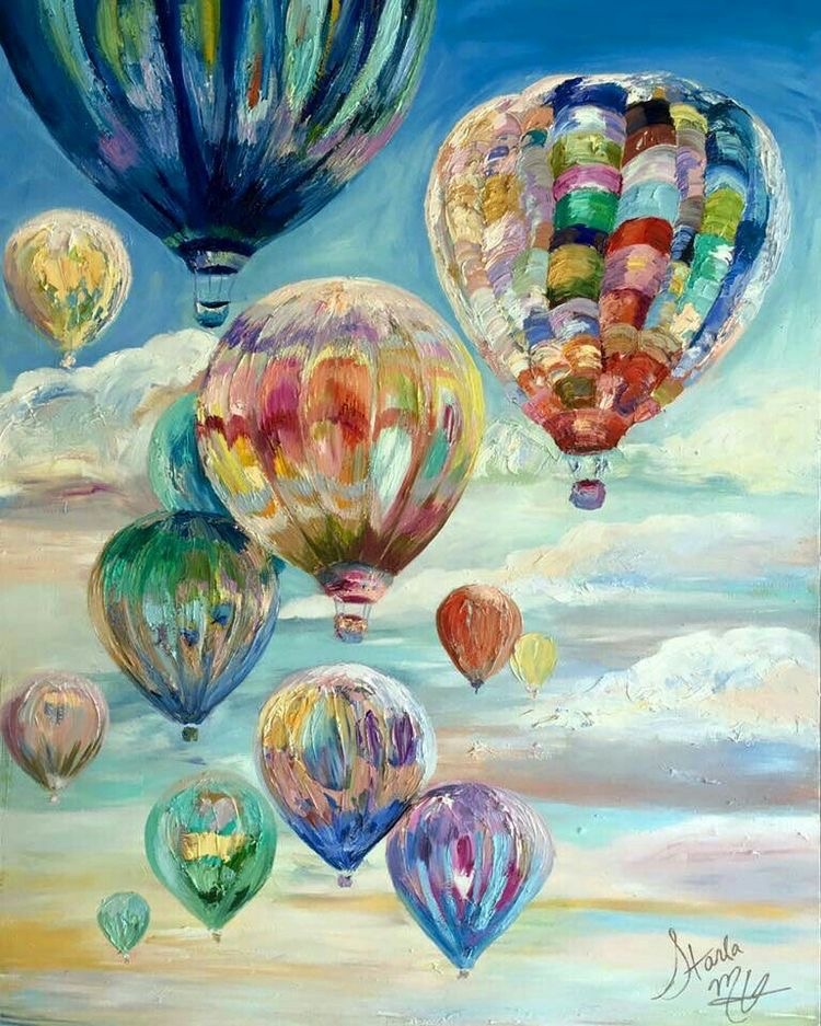 Пишем акрилом романтичные воздушные шары на холсте с подрамником 30х40 см.