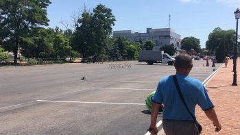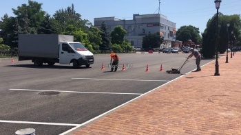 Корреспондент Керчь.ФМ задал вопрос, подразумевает ли разметка парковочные места еще и посредине новой площадки - рабочие ответили, что да, но пока никто не давал указаний делать там разметку.