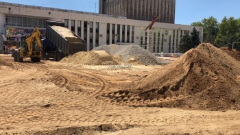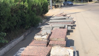 Так, техника утрамбовывает щебень - совсем скоро керчане не будут обходить площадь по проезжей части, чтобы не быть в пыли или грязи.