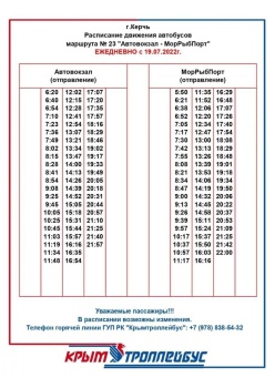 «Расписания движения общественного транспорта предприятия составлено с учётом оптимального времени прибытия и призвано удовлетворить потребности в надежном, комфортабельном и безопасном транспорте, как для жителей, так и для гостей города Героя Керчь», - уточнили в «Крымтроллейбусе»