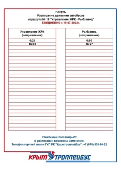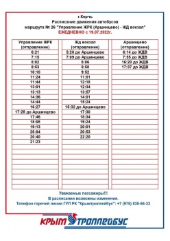 На  городских маршрутах города Керчи № 6, 14, 15, 16, 20, 21, 23, 26, 28, 40, которые обслуживает ГУП РК "Крымтроллейбус", вступило в силу новое расписание движения автобусов, - передает Керчь.ФМ.