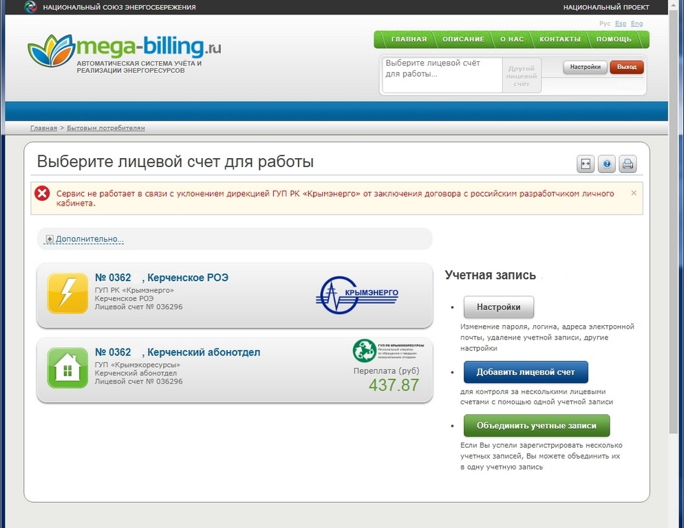 В свою очередь, стоит отметить, что Крымэкоресурсы продолжили пользоваться сервисом mega.billing.ru