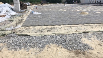 На объекте присутствует всего несколько рабочих, тех темпов благоустройства, которые были здесь прошлые недели пока нет.