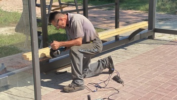 В Керчи 4 августа рабочие приступили к ремонту остановочного павильона около стадиона 50-летия Октября. Рабочие производят покраску павильона, монтируют новые скамейки и скоро приступят к установке стекол, - передает Керчь.ФМ.