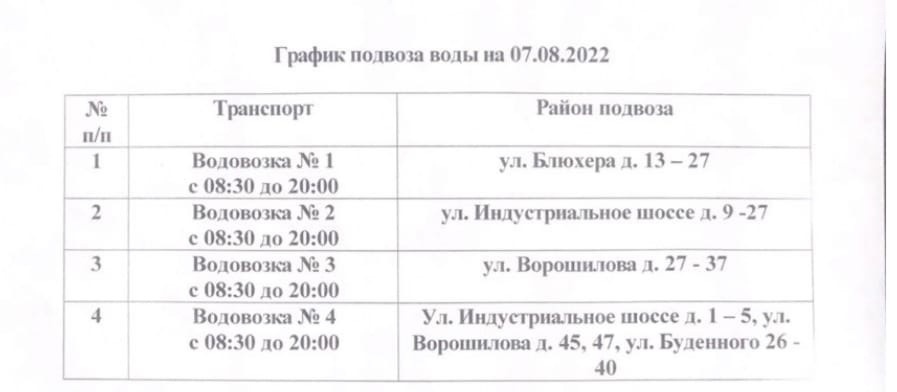 Керченский филиал приносит извинения за причиненные неудобства. Населению и предприятиям необходимо иметь запас питьевой воды на данный период времени. По вышеуказанным адресам будет организован подвоз воды специализированным автотранспортом предприятия. График подвоза воды прилагается.