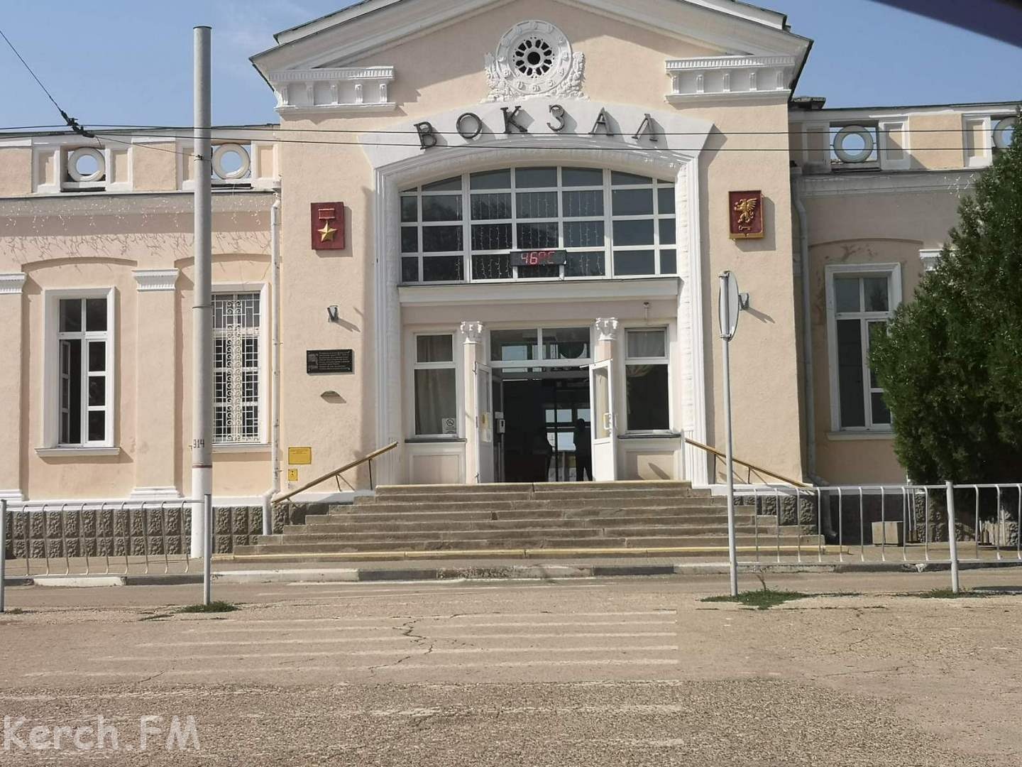 Фасад жд вокзала в Керчи пугает гостей города. Нет, штукатурка там не осыпается и камни на голову не летят. Дело в том, что электронное табло выдает температуру Марокко - +46, - передает Керчь.ФМ.