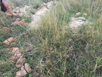 После прошлогодней публикации об опасном явлении на место выезжали геодезисты и брали пробы грунта. Судя по остаткам кернов там глина с железом. Возникает вопрос: на этом все, дождемся, когда выехать из Приозерного можно будет только через Керчь?