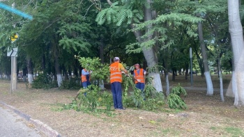 В Керчи 15 августа в Комсомольском парке и на улице Кирова вдоль дороги производят обрезку деревьев. Спиленные ветки складывают на газон, для дальнейшей погрузки в «лодочки», - передает Керчь.ФМ.