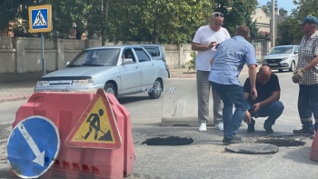 На 16 августа на месте работают коммунальные службы. Место провала оградили. Также рядом с провалом просел участок дорожного полотна.