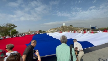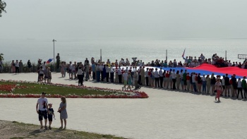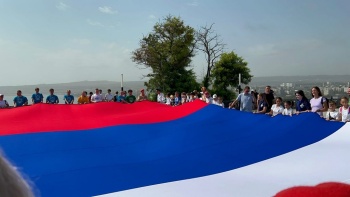В Керчи 22 августа на горе Митридат состоялась молодежная патриотическая акция по торжественной установке и развертыванию большого флага Российской Федерации. На мероприятие присутствовала администрация города. Керчан поздравили с Днем Государственного флага РФ,  - передает  Керчь.ФМ.
