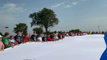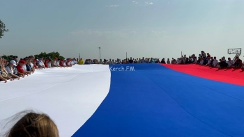 В Керчи на горе Митридат развернули огромный флаг РФ