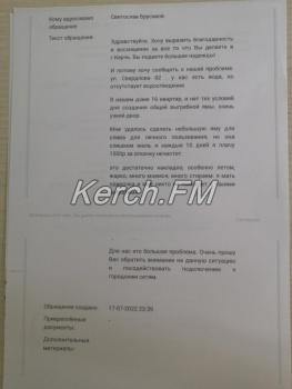 Керчане рассказали, что уже обращались с проблемой в администрацию и даже получили ответ, где им посоветовали идти в водоканал.