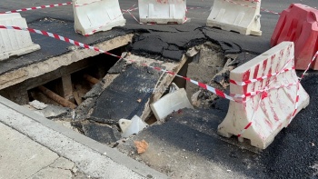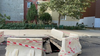 В Керчи на дублере улицы Генерала Петрова оградили часть дороги. Напомним, вчера, около здания женской консультации, провалился под дорогу самосвал с асфальтом, - передает Керчь.ФМ.